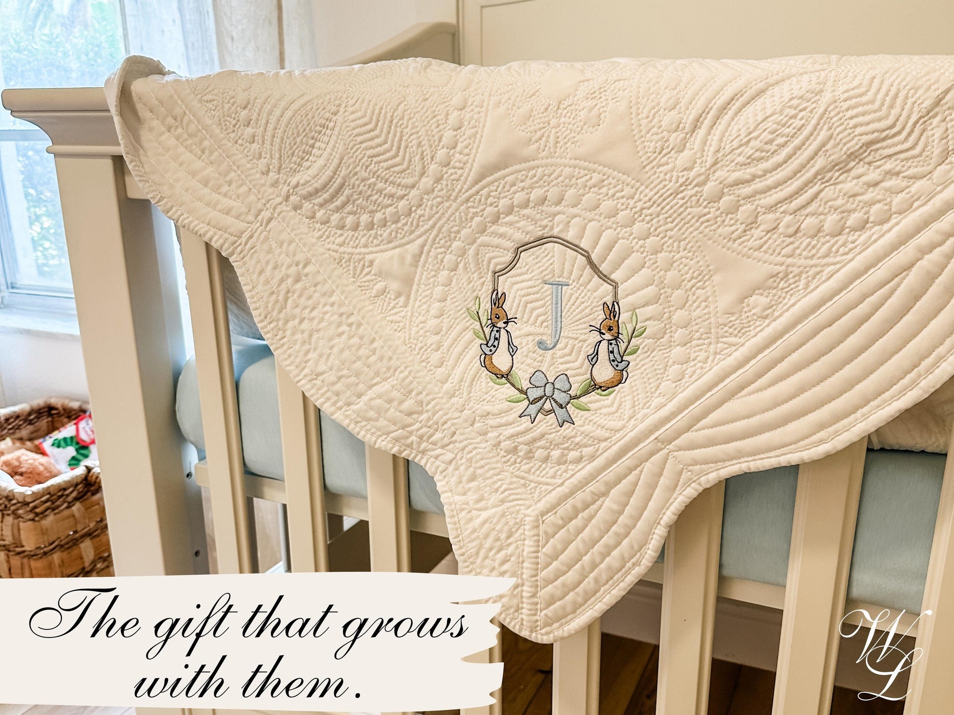These personalized embroidered heirloom quilts make the perfect gift for any bundle of joy! Gift them for baby showers, family members, coworkers, church members, neighbors, or yourself 😉. It also makes a great repeat gift as families grow! Blankets can be used as nursery decor, or they can be used on a daily basis for cuddles, tummy time, strollers, and more!
