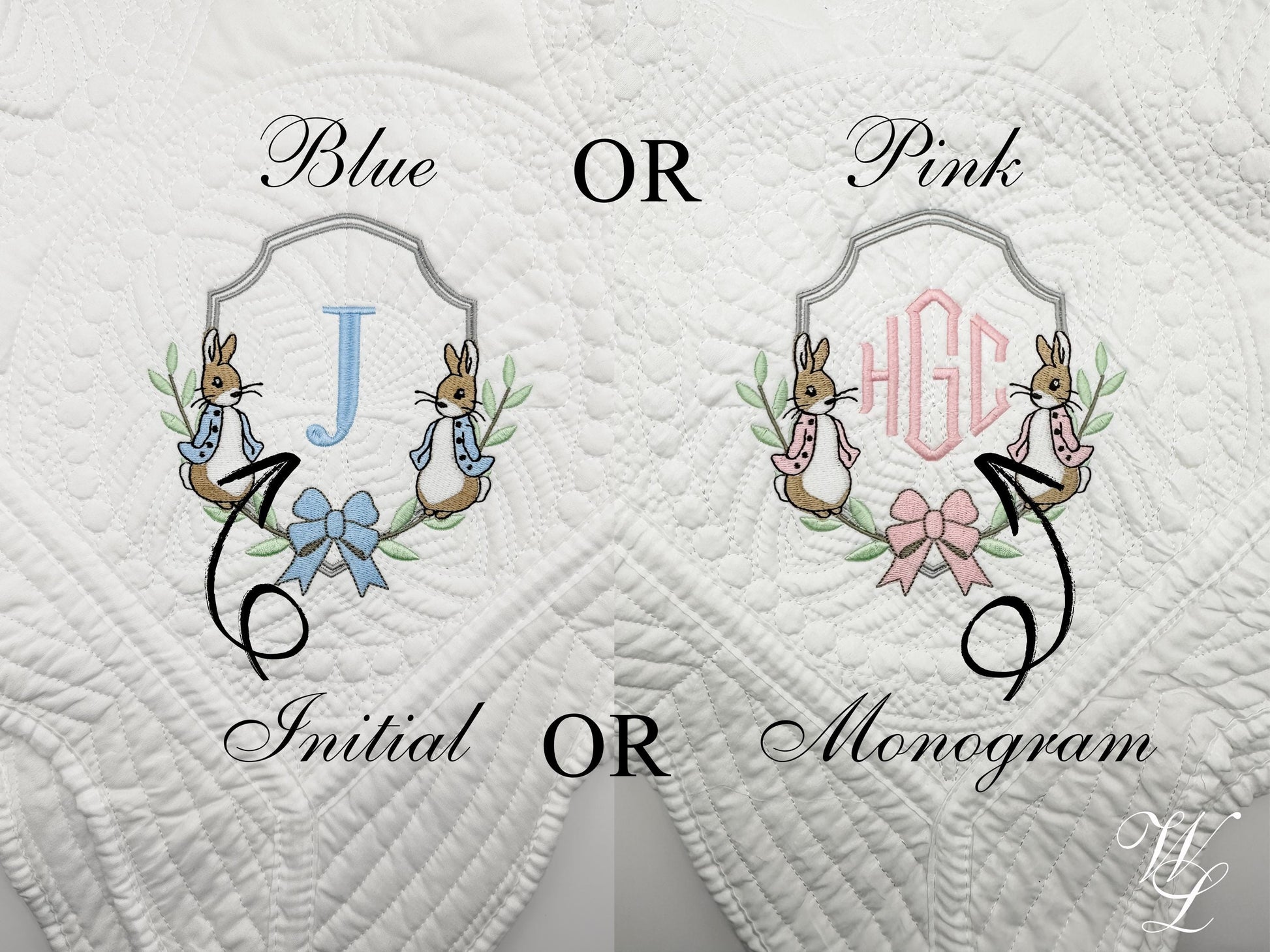 ~ Select pink OR blue bunnies/bows/letter(s)